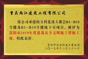 • 万科花溪大都会地下室项目被评为贵阳市2019年度建筑安全文明施工样板工地