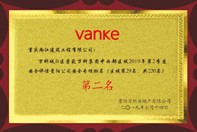 • 贵阳万科城B区2019年第二季度安全评估区域第二名