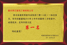 • 2019年荣获华润置地华西大区实测实量成绩第二名